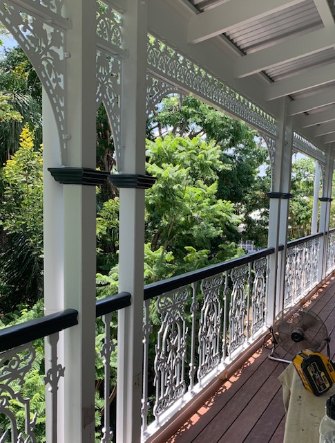 This Classic Queenslander in Yeronga Queensland looks great with the D I Y Chatterton Lacework balustrade and the stunning Majestic Lacework complimented with the Heritage Devonport Corner brackets. Its is all powdercoated in Dulux Pearl White. If you would consider some Heritage Ironwork in non rust aluminium on your Queenslander give us a call.